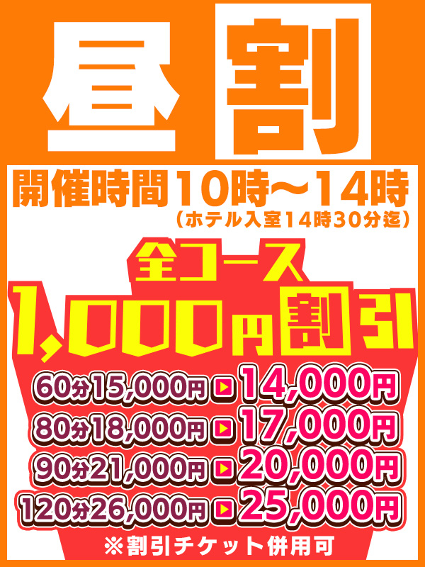 【昼割り】10時~14時迄♪全コースオール1,000円割引